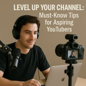 Caption: An aspiring YouTuber records a video, sharing essential tips for channel growth and success.